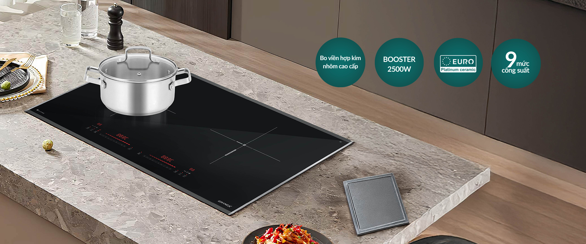 Bảng điều khiển Điều khiển trượt cảm ứng 9 levels mức công suất cho 2 vùng nấu độc lập